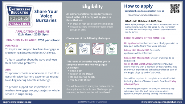 Don't miss the opportunity and apply before 12th March for a £250 bursary for your school.