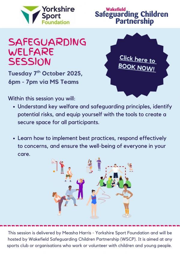 Please see the flyer below for details of a Safeguarding Welfare in Sport training session, taking place on Tuesday 7th October 2025, 6pm - 7pm, online via MS Teams.
