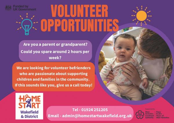 Could you or someone you know spare a little time each week to become a volunteer befriender? Please see the poster below for more detail and if you are interested or just want a little bit more information first please email admin@homestartwakefield.org.uk