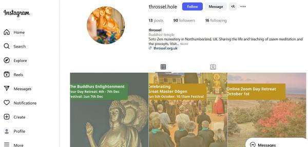 Throssel now has an official Instagram account. This will serve to keep the sangha informed about upcoming events and teaching, as well as share pictures from our extensive photo archive.