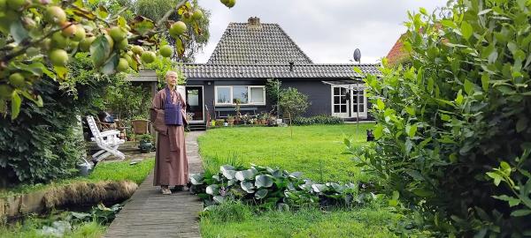 At the end of July this year our temple moved to different premises. This was because we could no longer keep up with maintenance and gardening of the sizeable building and garden. Our present temple still offers a meditation room for a small group of trainees, a common room/kitchen, and a guestroom and in the summer a guest cottage.